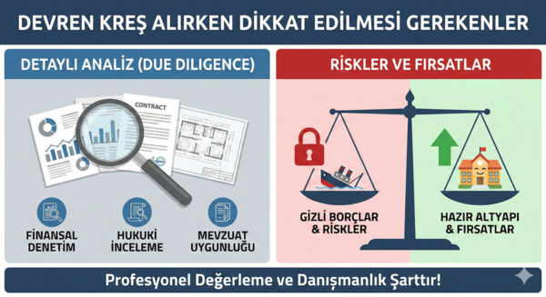 İmza atmadan önce mutlaka Due Diligence (Detaylı Durum Tespiti) yapın: 1) Ruhsat & bina uygunluğu (deprem raporu, yangın vb.), 2) Finansal gerçeklik (SGK/vergi borcu, tahsilat), 3) Kira ve devir hakkı, 4) Marka/itibar (veli algısı), 5) Personel ve kültür.
